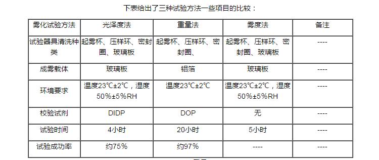 汽車內飾霧化試驗主要檢測方法的比較